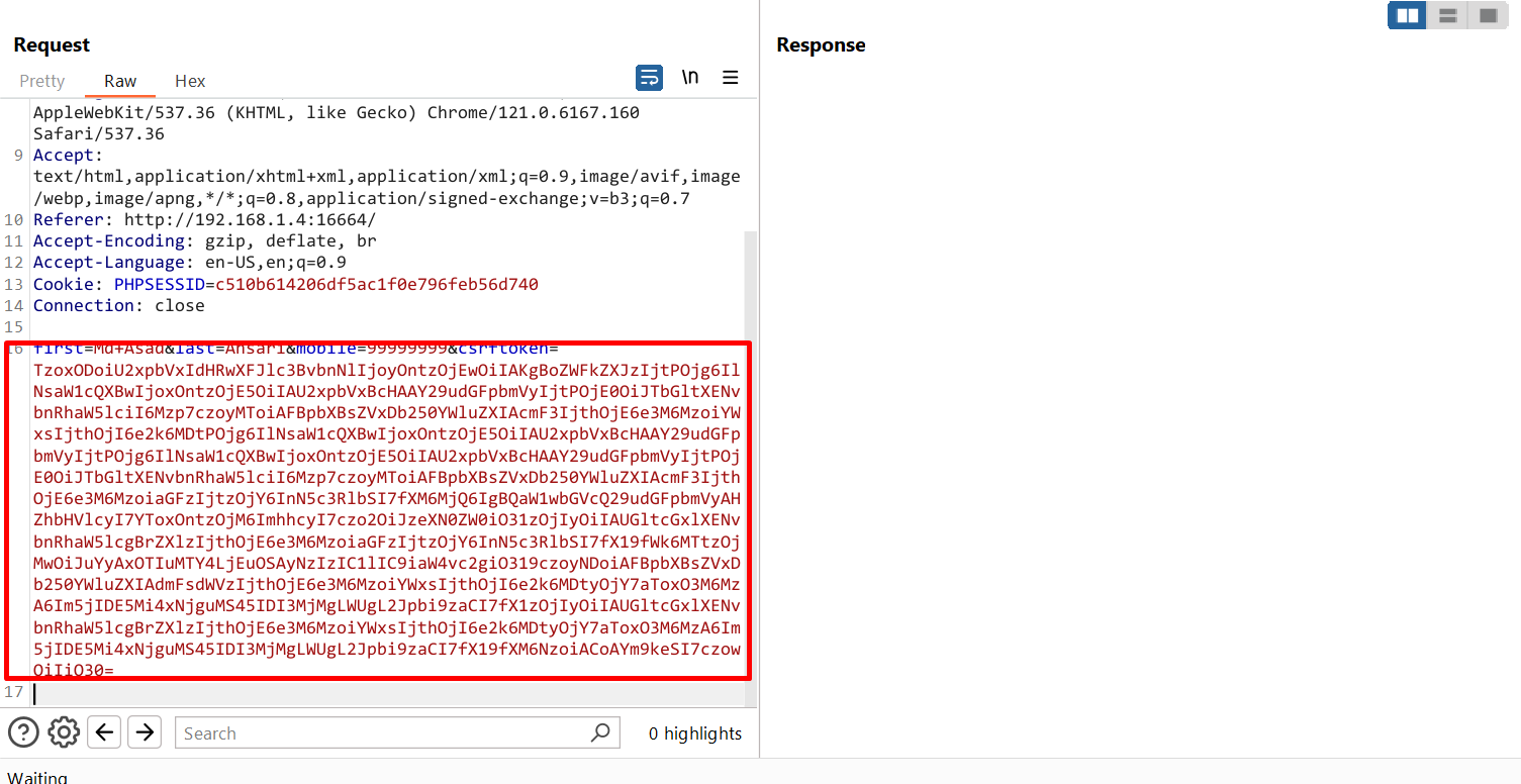 To confirm this, I proceeded to decode the CSRF token, which I will explain in the next step. If the application is handling serialized data insecurely, it may be vulnerable to deserialization attacks, allowing us to inject a malicious payload.