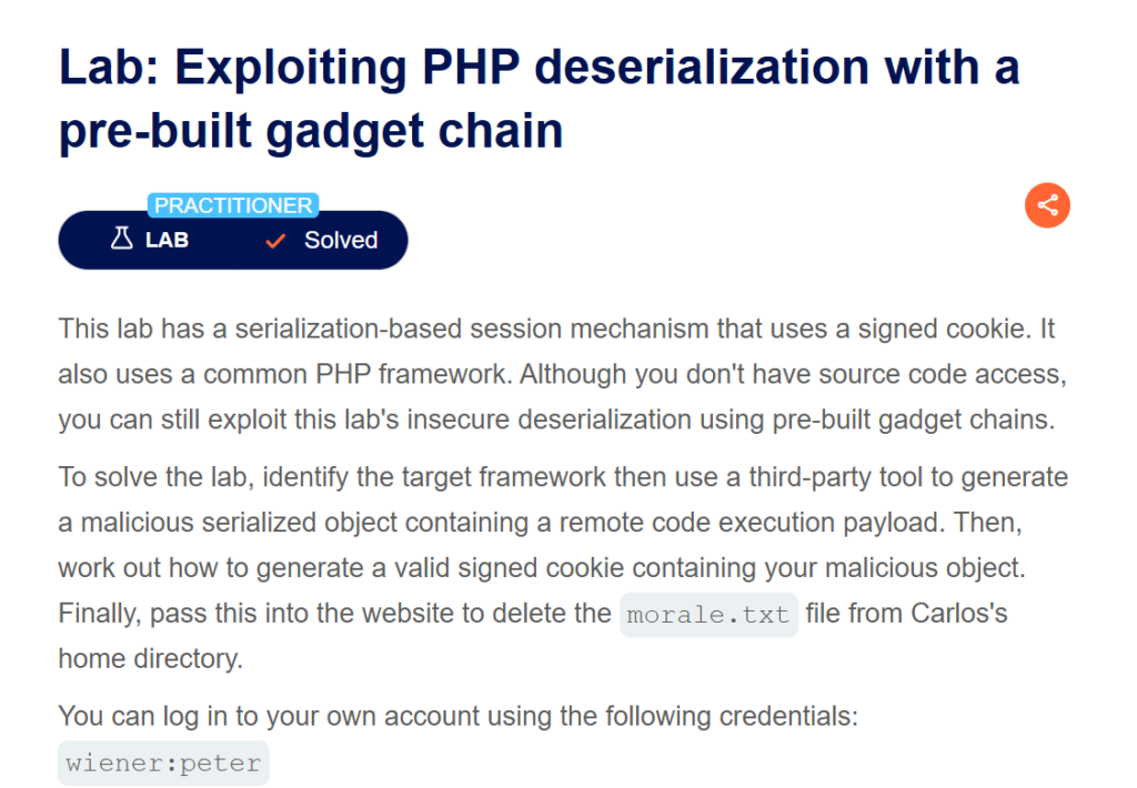 Blog, Web AttacksInsecure Deserialization – Portswigger Lab 6: Exploiting PHP deserialization with a pre-built gadget chain Leave a Comment / Blog, Web Attacks / Md Asad Ansari
