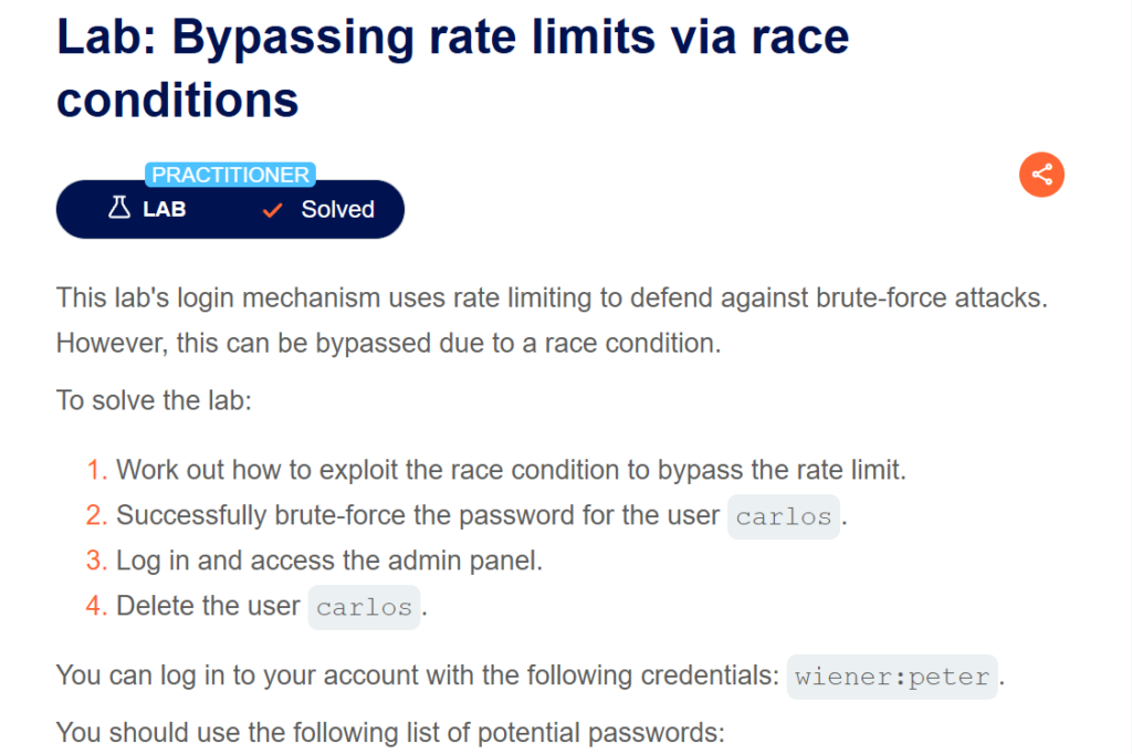 Blog, Web AttacksRace Condition – Portswigger Lab 2: Bypassing rate limits via race conditions Leave a Comment / Blog, Web Attacks / Md Asad Ansari