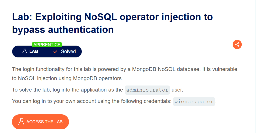 Blog, Web AttacksNo SQL Injection – Portswigger: Exploiting NoSQL operator injection to bypass authentication Leave a Comment / Blog, Web Attacks / Md Asad Ansari
