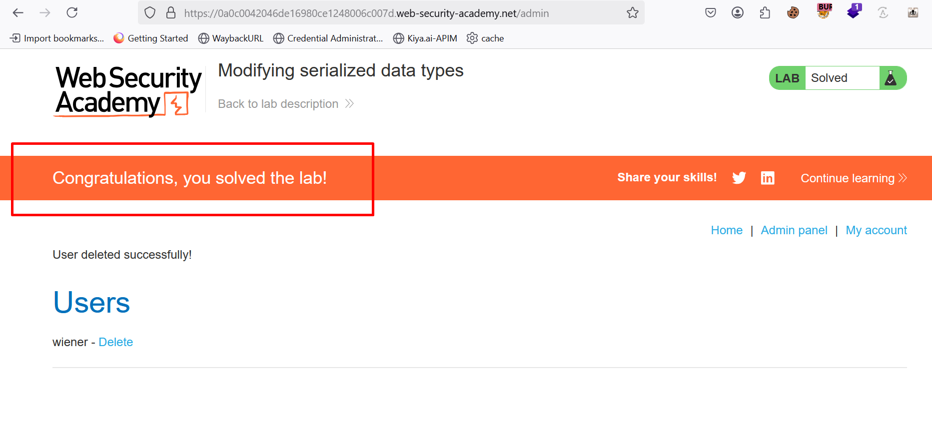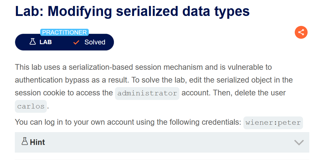 2 thoughts on “Insecure Deserialization – Portswigger Lab 2: Modifying serialized data types”