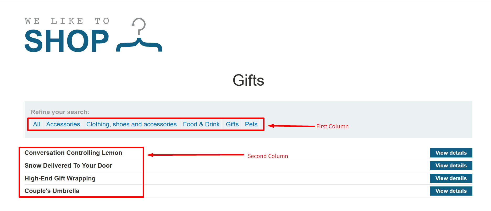 Step 9- When checking the columns, we found that the query has two columns: the first column shows the category, and the second column shows the name of the gift.