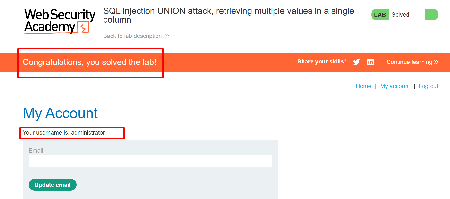 Step 15 – We have successfully logged in as the administrator and completed the lab.